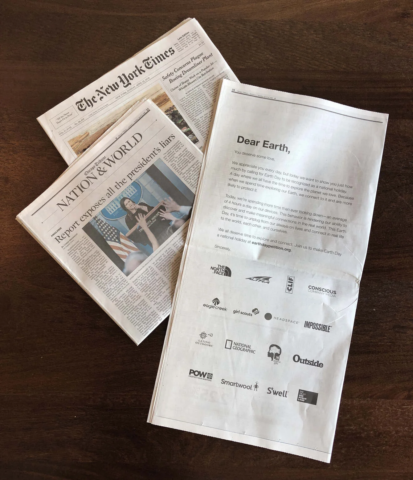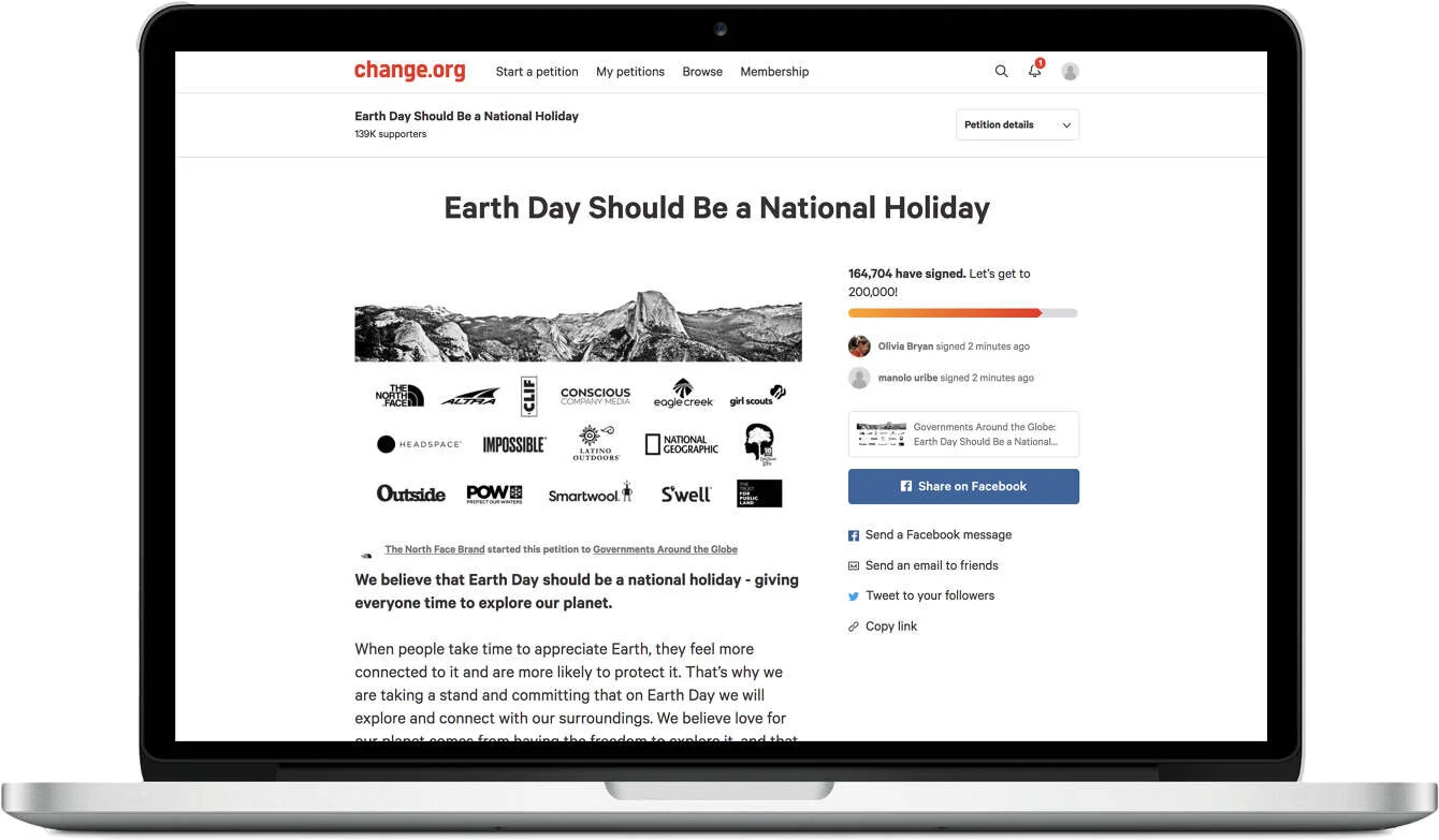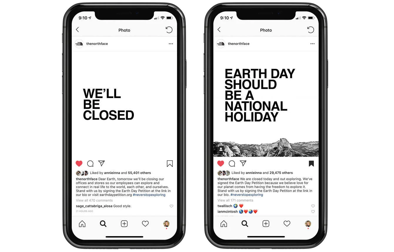 And to create true impact for our future, we launched the Earth Day Petition to make Earth Day a national holiday. We brought together like-minded brands to stand for something bigger.  And to set the example, on Earth Day, TNF closed all their stor